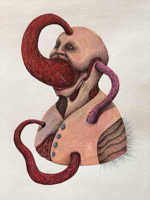 S'il y a des corps, c'est pour inonder leur insoumission à toute matérialité, leur vertigineuse création, le pouvoir incessant d'extraire de la vie ce cortège incessant de figures allongées qui s'enrouleront à un moment autour de la disparition d'un corps-machine, pour visiter par la peinture cette liberté d'aller d'une abstraction à une figuration, dans un va-et-vient coloré pour alors proposer une autre vue du sujet, d'un sujet aux rivages de la naissance, la naissance d'un corps recomposé. Aux portes d'un abîme, le spectacle que propose Laurent Proux s'ordonne dans la grâce et l'harmonie en contrepoint à Pablo Picasso, non pour désavouer celui-ci, l'effarement n'en est que plus difficilement soutenable, mais pour donner au jeu social sa mise en tension historique, sa conscience, une pénétration dans un temps qui soulève la problématique de la machine.